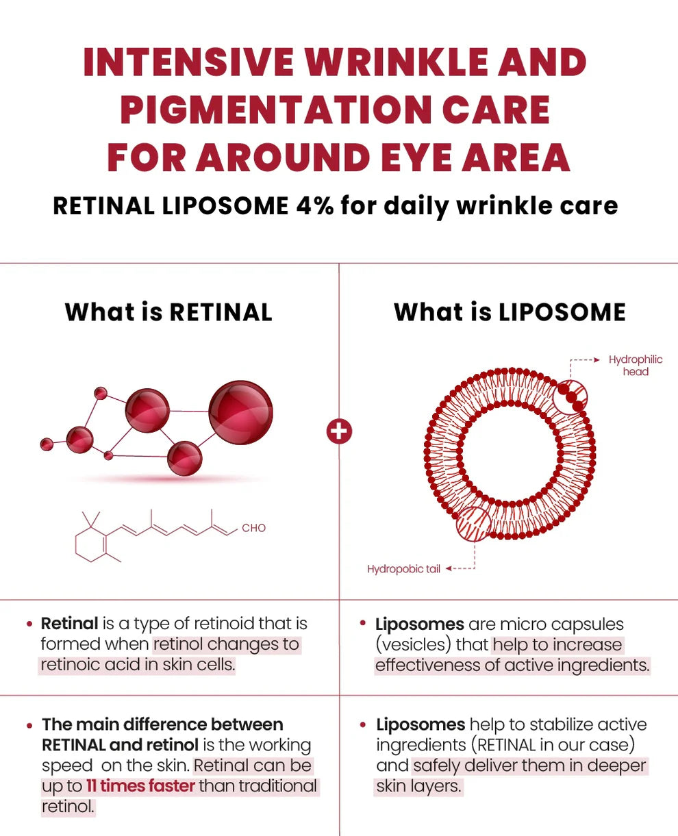 - This eye cream enriched with 4% of Retinal Liposome and Lactobacillus/Soybean Ferment Extract provides anti-aging and brightening effects, helps enhance skin texture and reduce the appearance of wrinkles with minimal irritation.